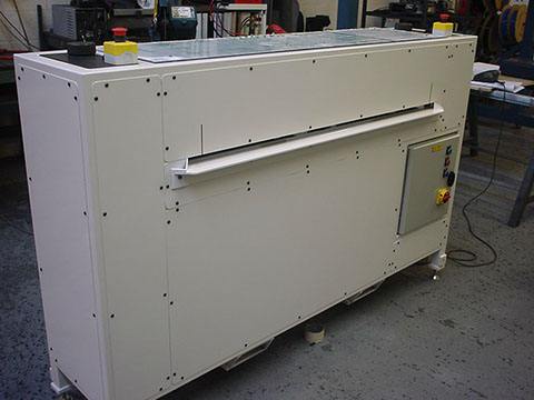 Design and manufacture a self-contained machine that cut a RCL of extrusion to a finished size, ‘zap’ the warp in two areas of the seal and auto-mark the extrusion as having passed though the machine.