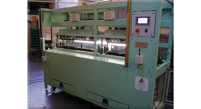 Again this machine is a self-contained electro/pneumatic device that produce both the front and rear 5 door products. But a difference to the 3 door machine is that there are two four pillar die sets each with it’s own pneumatic cylinder mounted within the main frame. The layout are;- front door seals end to end at back of each die set with the rear seals to the front. The mechanics and construction of the machine are as the front door described above. Selections to run all, or any variation of parts are via the HMI.