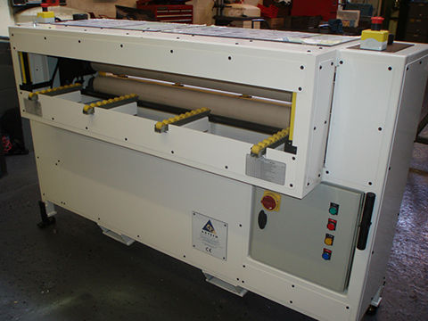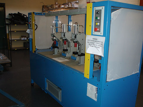 The machine is an electro-pneumatic powered machine that cut and warp zap tailgate seals.