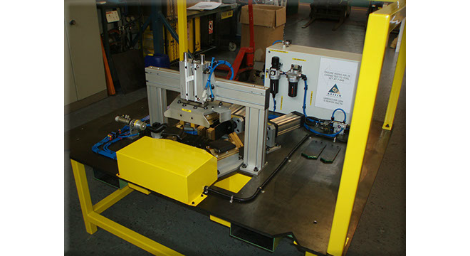 Design and manufacture a self-contained machine that check the O/A length of a pre-cut piece of extrusion, ‘zap’ the warp in four areas of the seal and auto-mark the extrusion as having passed though the machine.